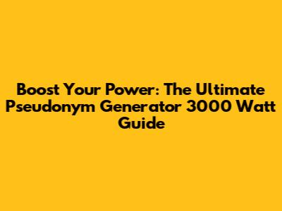 Boost Your Power: The Ultimate Pseudonym Generator 3000 Watt Guide