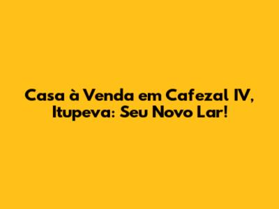 Casa À Venda Em Cafezal IV, Itupeva: Seu Novo Lar!