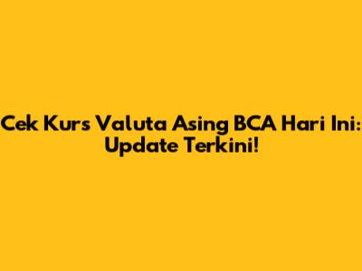 Cek Kurs Valuta Asing BCA Hari Ini: Update Terkini!