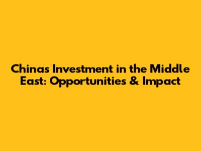 China's Investment In The Middle East: Opportunities & Impact