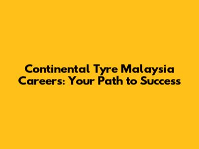 Continental Tyre Malaysia Careers: Your Path To Success