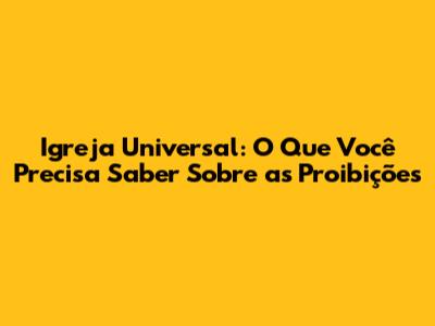 Proibições na Igreja Universal: Um Olhar Detalhado