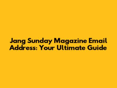 Jang Sunday Magazine: Your Guide To Contacting Them