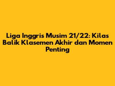 Hey guys! Masih ingat serunya Liga Inggris musim 2021/2022? Musim itu penuh drama, kejutan, dan persaingan sengit sampai pekan terakhir. Mari kita nostalgia sedikit dan mengulas tuntas klasemen akhir Liga Inggris musim 2021/2022, sekaligus menyoroti momen-momen penting yang bikin jantung berdebar. Buat kalian penggemar setia sepak bola Inggris, artikel ini wajib banget dibaca!