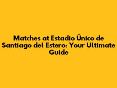 Matches At Estadio Único De Santiago Del Estero: Your Guide