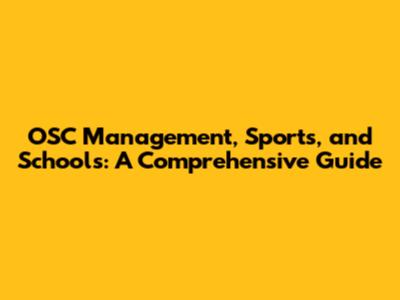 OSC Management, Sports, And Schools: A Comprehensive Guide
