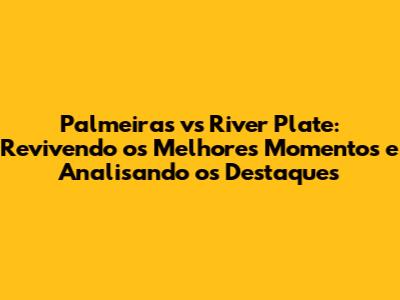 Palmeiras Vs River: Momentos Épicos E Análise Completa