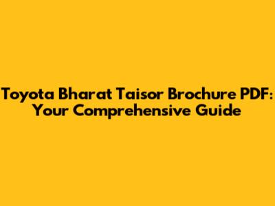 Why You Need the Toyota Bharat Taisor Brochure